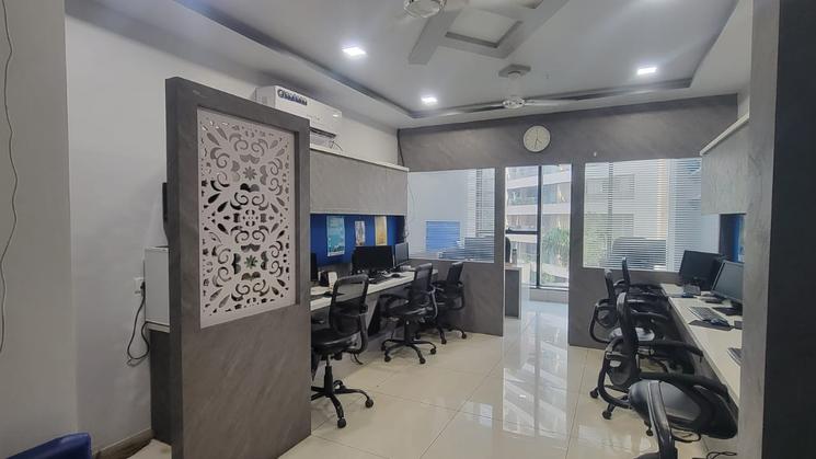 This stylish 580 sq. ft. fitted office space for rent in Alkapuri offers a perfect blend of functionality and comfort. It features a private washroom, a wet pantry for lunchtime convenience, and an individual balcony for a refreshing break. The space comes fully furnished with desks, chairs for a 10-person team, and a dedicated meeting room. Stay productive with high-speed elevators, power backup, and central AC. Security is a priority with CCTV and 24/7 access control. This office is ideal for those seeking a professional and convenient workspace in a prime Alkapuri location.